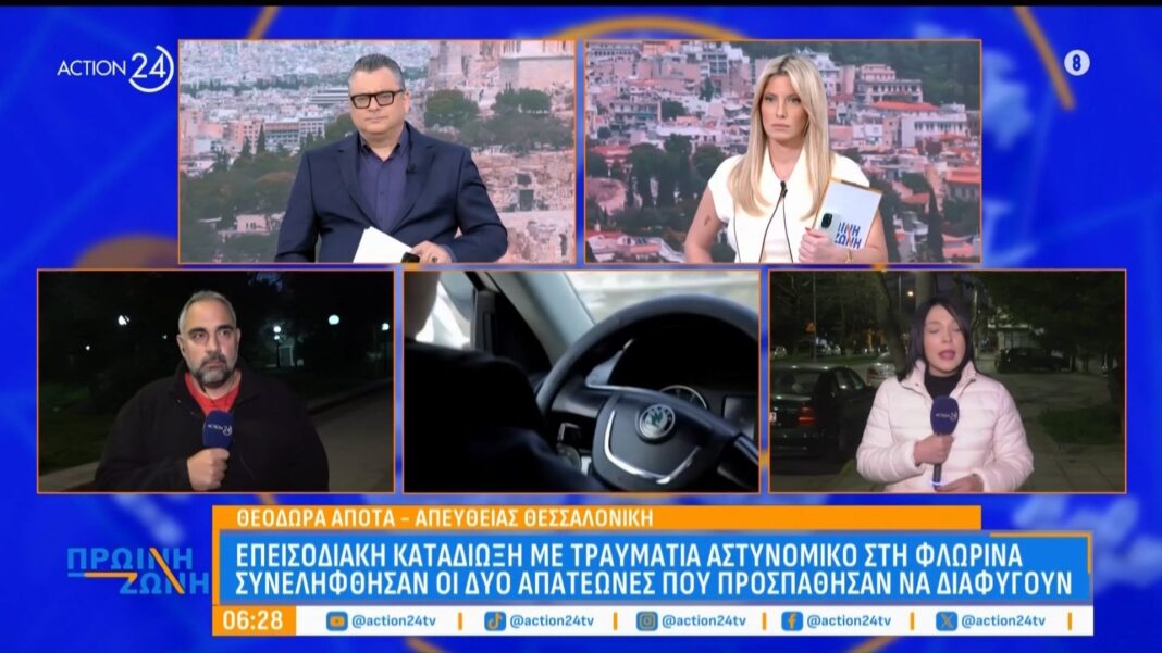 Στη Φλώρινα, σημειώθηκε έντονη καταδίωξη που είχε ως αποτέλεσμα τον τραυματισμό ενός αστυνομικού. Οι αρχές, μετά από συντονισμένες προσπάθειες, κατάφεραν να εντοπίσουν και να συλλάβουν τους δύο διαφυγείς, οι οποίοι φέρονται να εμπλέκονται σε σοβαρές εγκληματικές δραστηριότητες.