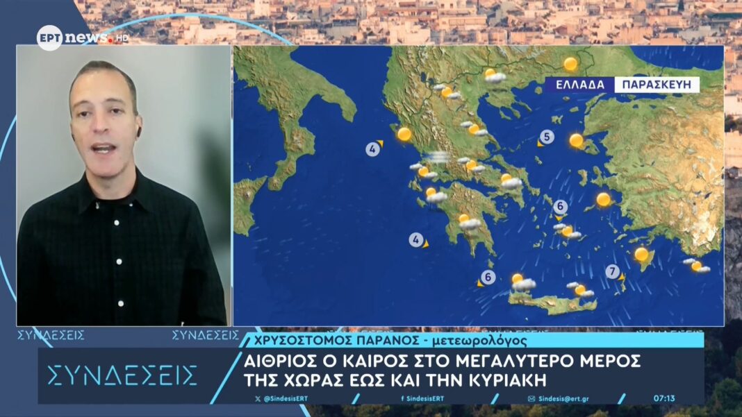 Ο μετεωρολόγος Χρυσόστομος Παρανό αναλύει τις επικρατούσες καιρικές συνθήκες για την τρέχουσα εβδομάδα. Οι θερμοκρασίες αναμένονται να κυμανθούν σε φυσιολογικά επίπεδα για την εποχή, με πιθανές βροχοπτώσεις σε ορισμένες περιοχές.