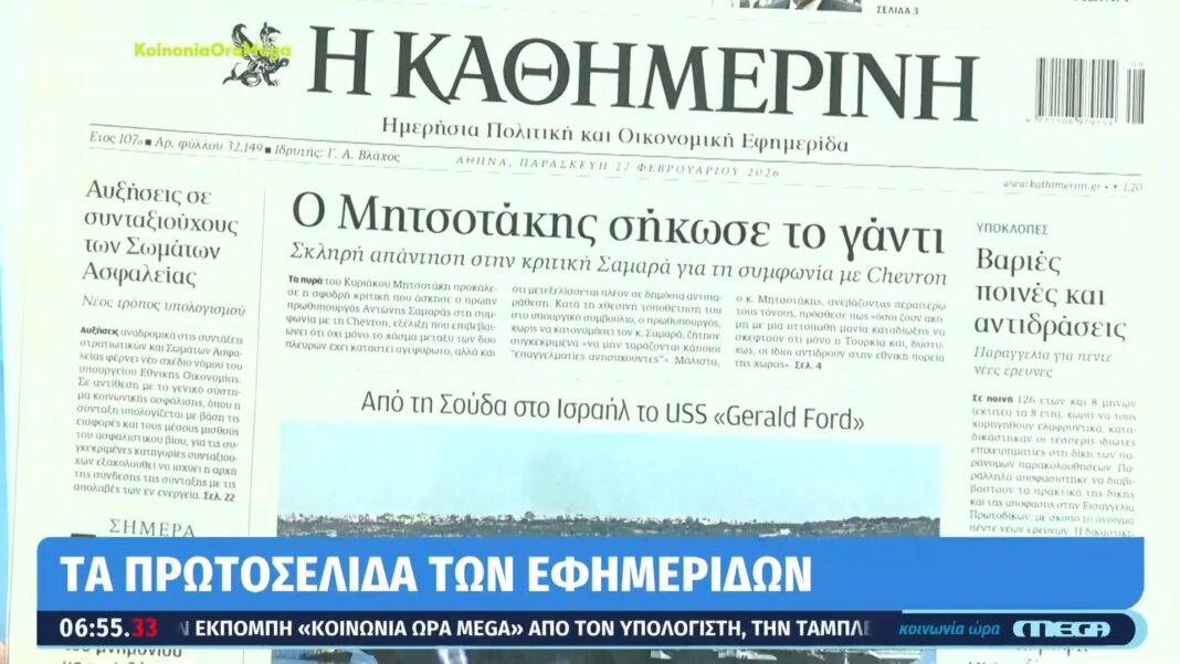 Τα πρωτοσέλιδα των εφημερίδων | 27/02/2026