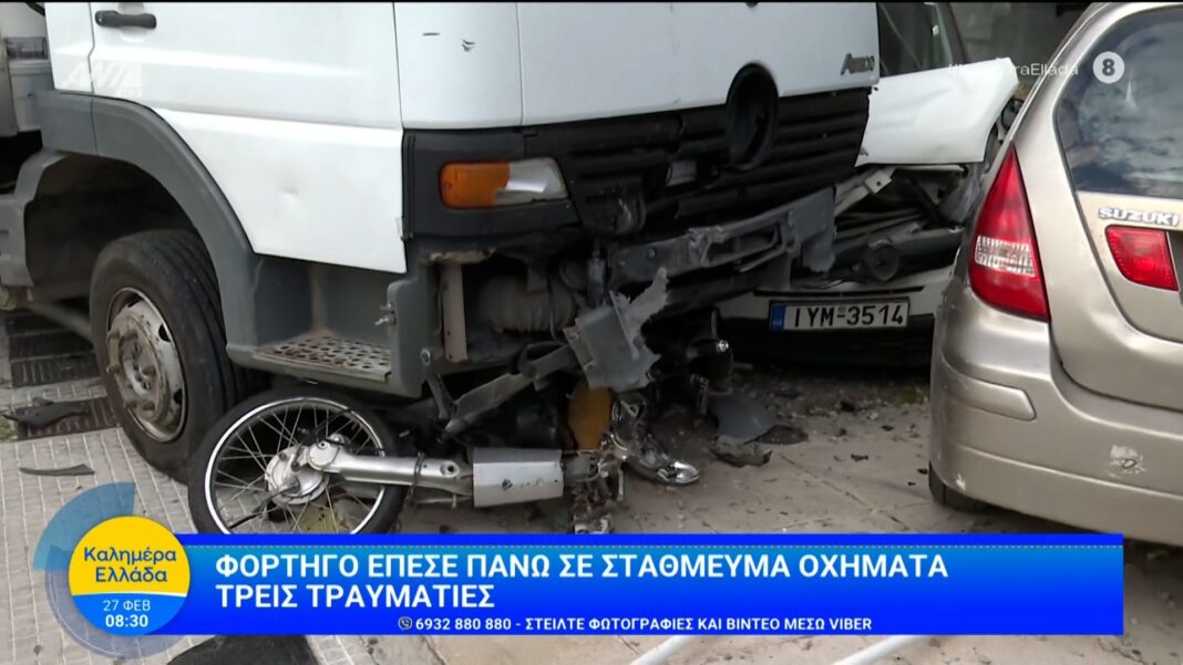Σήμερα το πρωί, ένα φορτηγό παρέκκλινε της πορείας του και έπεσε πάνω σε σταθμευμένα αυτοκίνητα σε κεντρικό δρόμο. Από το ατύχημα, τρεις άνθρωποι τραυματίστηκαν, ενώ οι πρώτες πληροφορίες αναφέρουν ότι η κατάσταση τους δεν είναι σοβαρή.