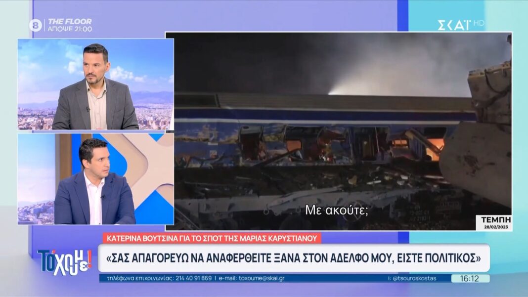 Η ανάρτηση της Μ. Καρυστιανού για την τρίτη επέτειο της τραγωδίας των Τεμπών έχει προκαλέσει έντονες αντιδράσεις. Η Κατερίνα Βουτσινά, σε μια συγκινητική δήλωση, απηύθυνε έκκληση να μην αναφέρεται ξανά στον αδελφό της, τονίζοντας την πολιτική διάσταση της συζήτησης.