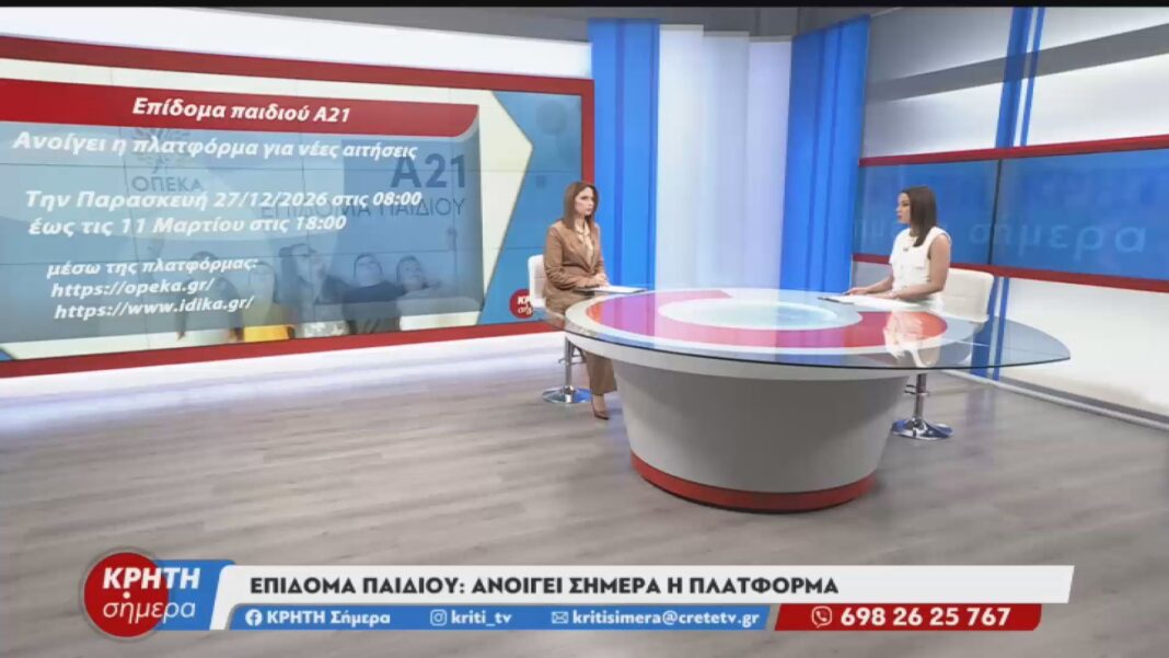 Ηλεκτρονικές αιτήσεις έως 11 Μαρτίου 2026 για το επίδομα παιδιού μέσω του Α21, ανακοίνωσε το υπουργείο Κοινωνικής Συνοχής και η ΟΠΕΚΑ.