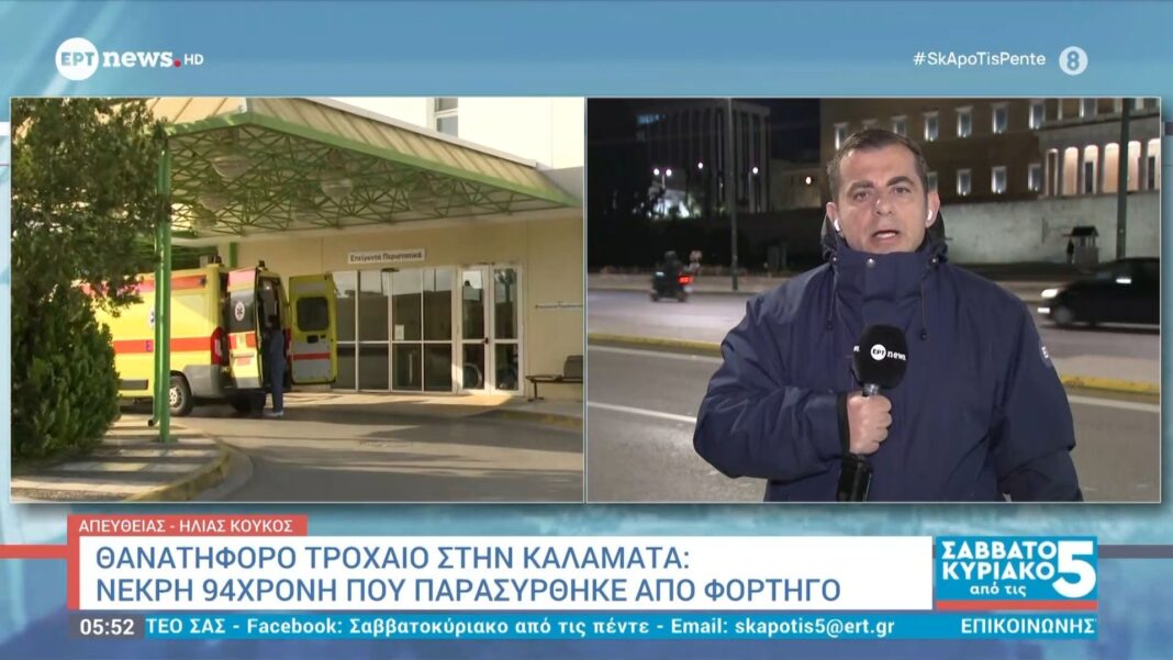 Οδηγός φορτηγού παρέσυρε την 94χρονη ενώ έκανε όπισθεν στην Καλαμάτα, προκαλώντας θανάσιμους τραυματισμούς. Η αστυνομία ερευνά τις συνθήκες του περιστατικού.
