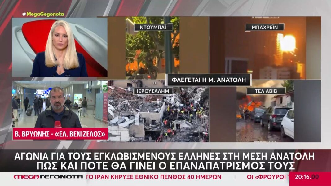 Η κατάσταση στη Μέση Ανατολή παραμένει τεταμένη, με πολλές ελληνικές οικογένειες να βρίσκονται σε κίνδυνο. Οι αρχές προτείνουν στους πολίτες να παραμείνουν στα καταφύγια, ενώ εξετάζονται οι διαδικασίες για τον επαναπατρισμό τους.