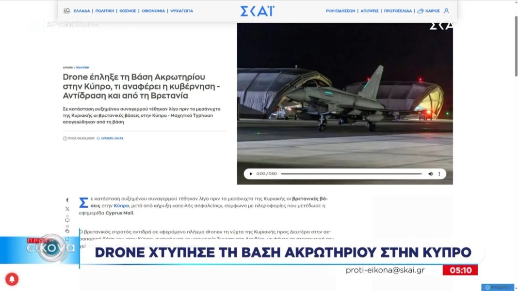 Μη επανδρωμένο drone πραγματοποίησε χτύπημα στη βρετανική αεροπορική βάση στο Ακρωτήρι, προκαλώντας ανησυχία στις τοπικές αρχές. Ο Πρόεδρος της Κυπριακής Δημοκρατίας επιβεβαίωσε το περιστατικό,...