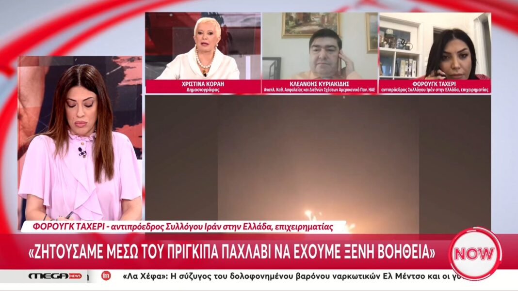 Η Φορούγκ Ταχερί, αντιπρόεδρος του συλλόγου Ιράν στην Ελλάδα, αναφέρεται στην ανάγκη για ξένη βοήθεια προκειμένου να υποστηριχθούν οι πολίτες του Ιράν. Η συζήτηση επικεντρώνεται στο ρόλο του πρίγκιπα Παχλαβί, μέσω του οποίου ζητήθηκε αυτή η βοήθεια.