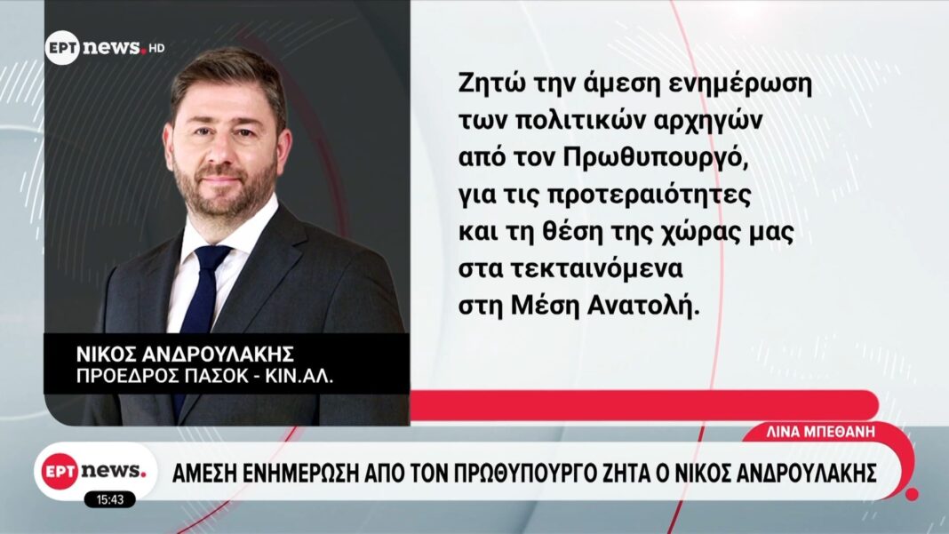 Άμεση ενημέρωση από τον πρωθυπουργό ζητά ο Νίκος Ανδρουλάκης
