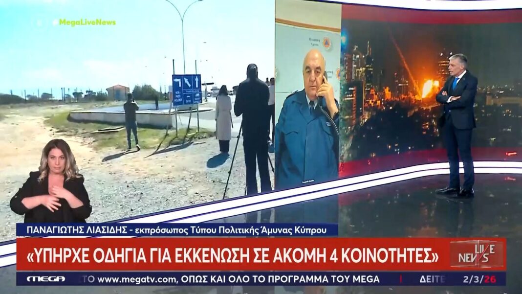Παναγιώτης Λιασίδης: Η Πολιτική Άμυνα εκκενώνει τέσσερις κοινότητες στην Κύπρο λόγω κρίσης, 53 άτομα μεταφέρθηκαν ήδη σε ξενοδοχεία για ασφάλεια.