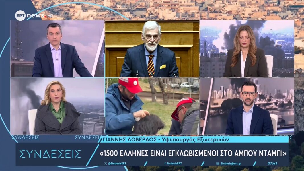 Ο υφυπουργός Εξωτερικών Γιάννης Λοβέρδος αναφέρθηκε στην κρίσιμη κατάσταση των 1.500 Ελλήνων που έχουν εγκλωβιστεί στα Ηνωμένα Αραβικά Εμιράτα λόγω του πολέμου. Αν και υπάρχουν πτήσεις από το Ομάν, η εκκένωση εξαρτάται από το άνοιγμα του εναέριου χώρου, με την Ελλάδα να έχει ετοιμάσει σχέδιο επαναπατρισμού.
