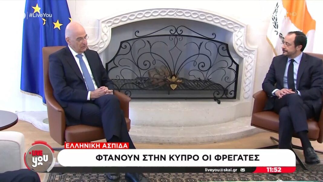 Ο Έλληνας Υπουργός Εξωτερικών, Νίκος Δένδιας, πραγματοποίησε επίσκεψη στην Κύπρο, όπου συναντήθηκε με τον ομόλογό του, Ιωάννη Χριστοδουλίδη. Οι δύο υπουργοί αντάλλαξαν απόψεις για κρίσιμα ζητήματα που αφορούν την περιοχή, εστιάζοντας στην ενίσχυση των διμερών σχέσεων Ελλάδας-Κύπρου.