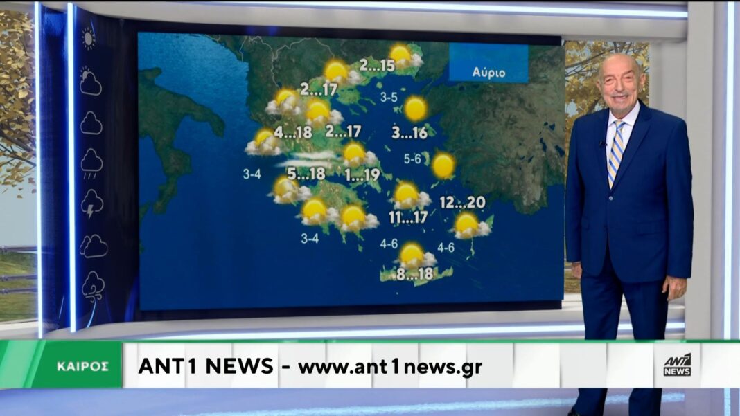 Η πρόγνωση του καιρού για σήμερα ανακοινώνει σχετικά ήπιες καιρικές συνθήκες σε όλη τη χώρα. Οι θερμοκρασίες θα κυμανθούν από 10 έως 18 βαθμούς Κελσίου, με ελαφρείς ανέμους να πνέουν από βόρεια διεύθυνση.