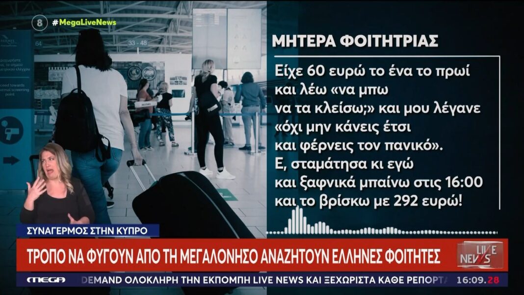 Παράλληλα, Έλληνες φοιτητές που σπουδάζουν στο νησί καταγγέλλουν δραματική αύξηση στις τιμές των αεροπορικών εισιτηρίων προς την Ελλάδα. Η αναστάτωση έχει προκαλέσει ανησυχία, καθώς πολλοί προσπαθούν να επιστρέψουν άμεσα στις οικογένειές τους.