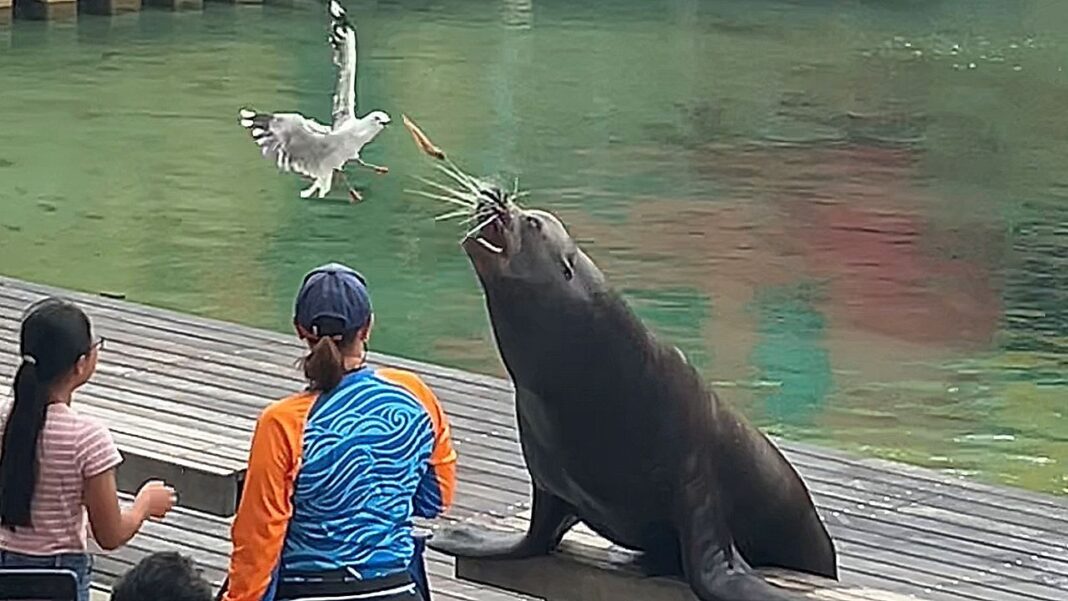Στο Sea World του Κουίνσλαντ, ένας γλάρος έκανε μια εντυπωσιακή κίνηση, κλέβοντας ένα ψάρι από το στόμα ενός θαλάσσιου λέοντα. Η σκηνή εκτυλίχθηκε στις 26 Ιανουαρίου, όταν η υπεύθυνη του κέντρου προσέφερε το ψάρι σε μια επισκέπτρια για να το δώσει στο ζώο.