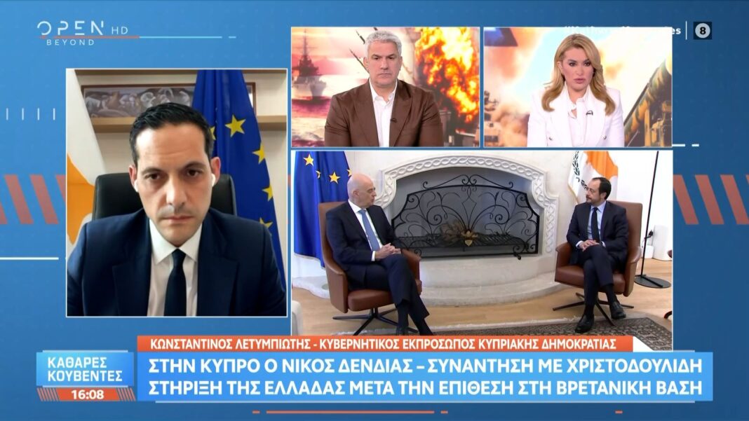 Στην πρόσφατη επίσκεψή του στην Κύπρο, ο Νίκος Δένδιας συναντήθηκε με τον Πρόεδρο Χριστοδουλίδη, όπου συζητήθηκαν θέματα ασφάλειας και συνεργασίας μεταξύ Ελλάδας και Κύπρου. Η συνάντηση πραγματοποιήθηκε στο πλαίσιο των εξελίξεων γύρω από την επίθεση στη βρετανική βάση, υπογραμμίζοντας τη σημασία της υποστήριξης της Ελλάδας προς την Κυπριακή Δημοκρατία.