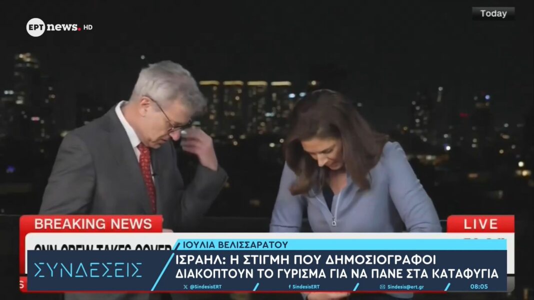 Ισραήλ: Η στιγμή που δημοσιογράφοι διακόπτουν το γύρισμα για να πάνε στα καταφύγια