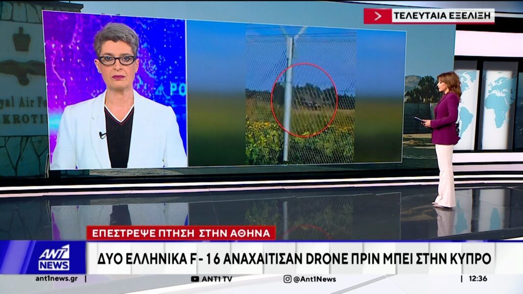 Δύο ελληνικά F16 αναχαίτισαν ένα ύποπτο drone που εντοπίστηκε κοντά στον εναέριο χώρο του Λιβάνου, πριν εισέλθει στην κυπριακή επικράτεια. Το μη επανδρωμένο αεροσκάφος εντοπίστηκε και αναγνωρίστηκε από τις ελληνικές ένοπλες δυνάμεις, με αποτέλεσμα να κριθεί αναγκαία η παρέμβαση των μαχητικών αεροσκαφών.