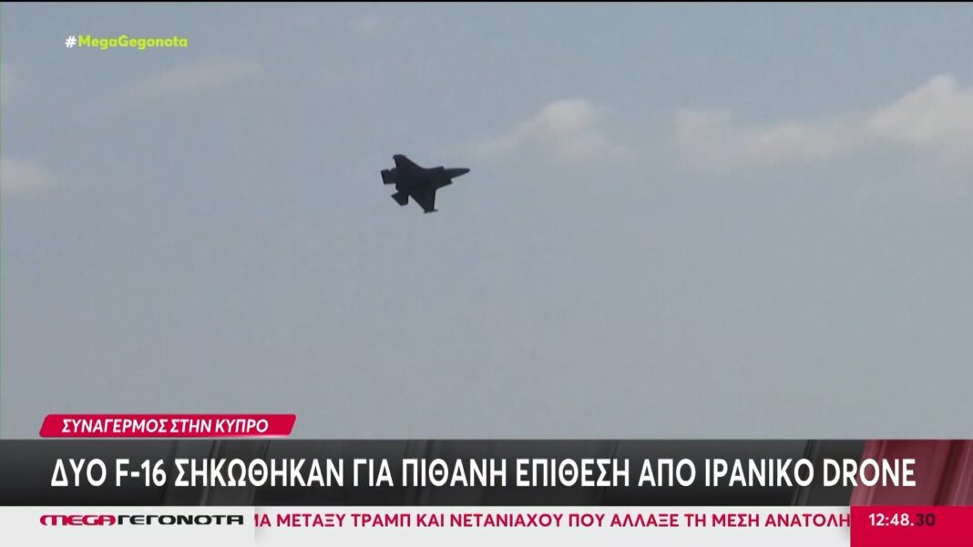 Η Κύπρος βρίσκεται σε κατάσταση επιφυλακής λόγω της απειλής πιθανής επίθεσης από ιρανικό drone. Δύο F-16 απογειώθηκαν από τη βάση του νησιού για να ενισχύσουν την αεροπορική ασφάλεια και να παρακολουθήσουν τις εξελίξεις.