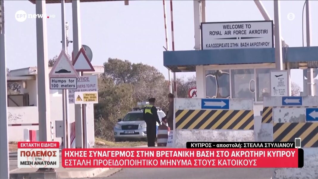 Συναγερμός σήμανε στο Ακρωτήρι της Κύπρου λόγω πιθανής απειλής, με τις αρχές να ενεργοποιούν τις διαδικασίες ασφαλείας. Σύμφωνα με πληροφορίες, απογειώθηκαν F-16 από τη βάση για να εξετάσουν την κατάσταση, ενώ η ανησυχία προκλήθηκε από μια προειδοποίηση που έλαβαν οι τοπικές αρχές.