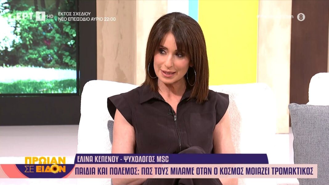 Η ψυχολόγος Ελίνα Κεπενού συζητά μεθόδους επικοινωνίας με τα παιδιά για τον πόλεμο, υπογραμμίζοντας την ανοιχτή συζήτηση και συναισθηματική στήριξη.
