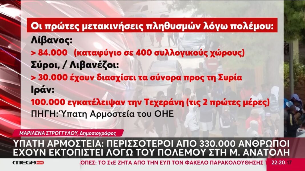 Η κατάσταση στη Μέση Ανατολή επιδεινώνεται συνεχώς, με εκατοντάδες χιλιάδες ανθρώπους να αναγκάζονται να εγκαταλείψουν τα σπίτια τους λόγω του αυξανόμενου πολέμου. Σύμφωνα με την Ύπατη Αρμοστεία, περισσότεροι από 330.000 πρόσφυγες έχουν εκτοπιστεί, αναζητώντας ασφάλεια και στήριξη σε γειτονικές περιοχές.