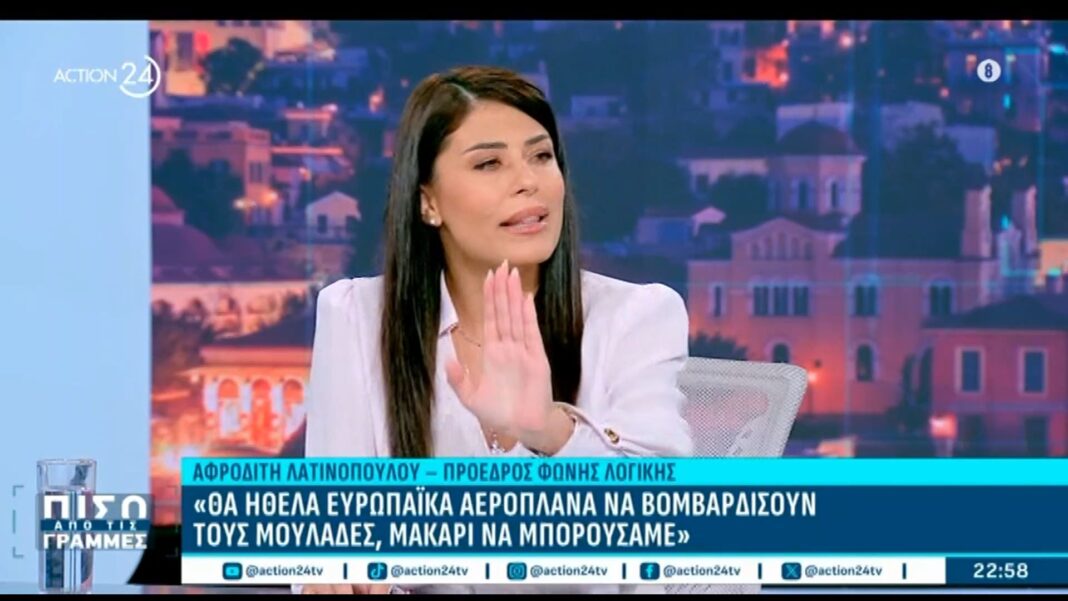 Η Αφροδίτη Λατινοπούλου εκφράζει τις απόψεις της σχετικά με την κατάσταση στο Αφγανιστάν, τονίζοντας την ανάγκη για διεθνή παρέμβαση. Σε δηλώσεις της, υπογραμμίζει ότι η χρήση ευρωπαϊκών αεροσκαφών για βομβαρδισμούς κατά των μουλάδων θα μπορούσε να είναι μια λύση για την απελευθέρωση της χώρας από τον ισλαμιστικό ζυγό.