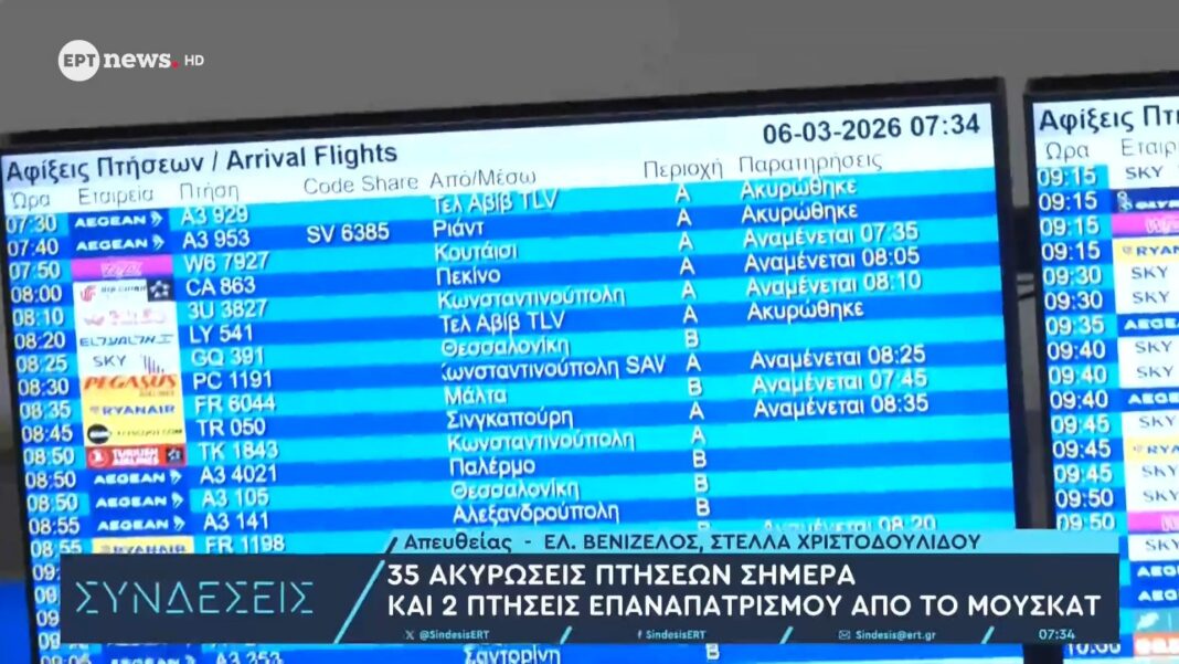 Σήμερα, αναμένονται δύο πτήσεις από τη Μουσκάτ του Ομάν, με την πρώτη να έχει προγραμματιστεί για τις 15:30 και τη δεύτερη για τις 21:30. Παράλληλα, έχουν ακυρωθεί συνολικά 35 πτήσεις από τη συγκεκριμένη περιοχή, με τις αρχές να παρακολουθούν στενά την κατάσταση.
