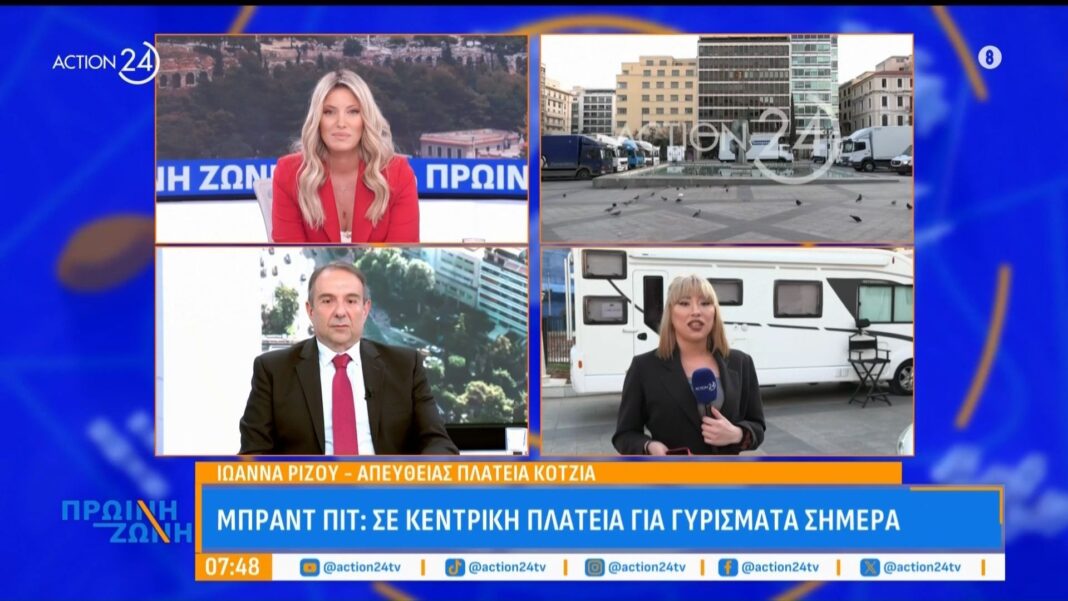 Σήμερα, η κεντρική πλατεία της Αθήνας μετατράπηκε σε κινηματογραφικό σκηνικό, καθώς ο διάσημος ηθοποιός Μπραντ Πιτ βρέθηκε εκεί για γυρίσματα νέας ταινίας. Πλήθος θαυμαστών συγκεντρώθηκε για να τον δει από κοντά, δημιουργώντας μια ζωντανή ατμόσφαιρα στην καρδιά της πόλης.