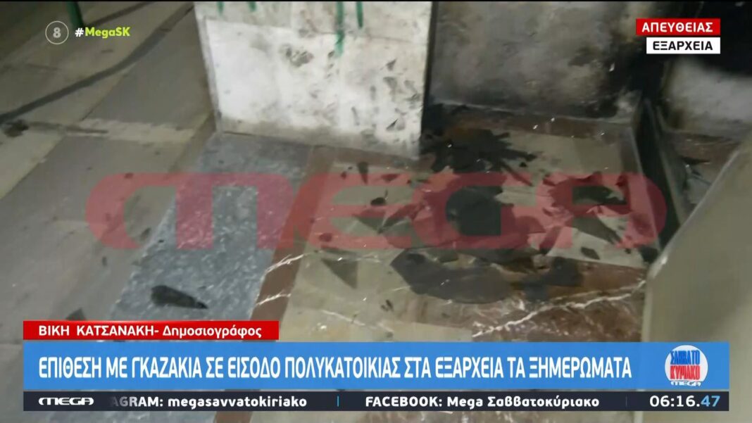 Τα ξημερώματα σημειώθηκε επίθεση με γκαζάκια σε είσοδο πολυκατοικίας στην περιοχή των Εξαρχείων. Από την έκρηξη προκλήθηκαν υλικές ζημιές στην πρόσοψη του κτιρίου, ωστόσο δεν αναφέρθηκαν τραυματισμοί.