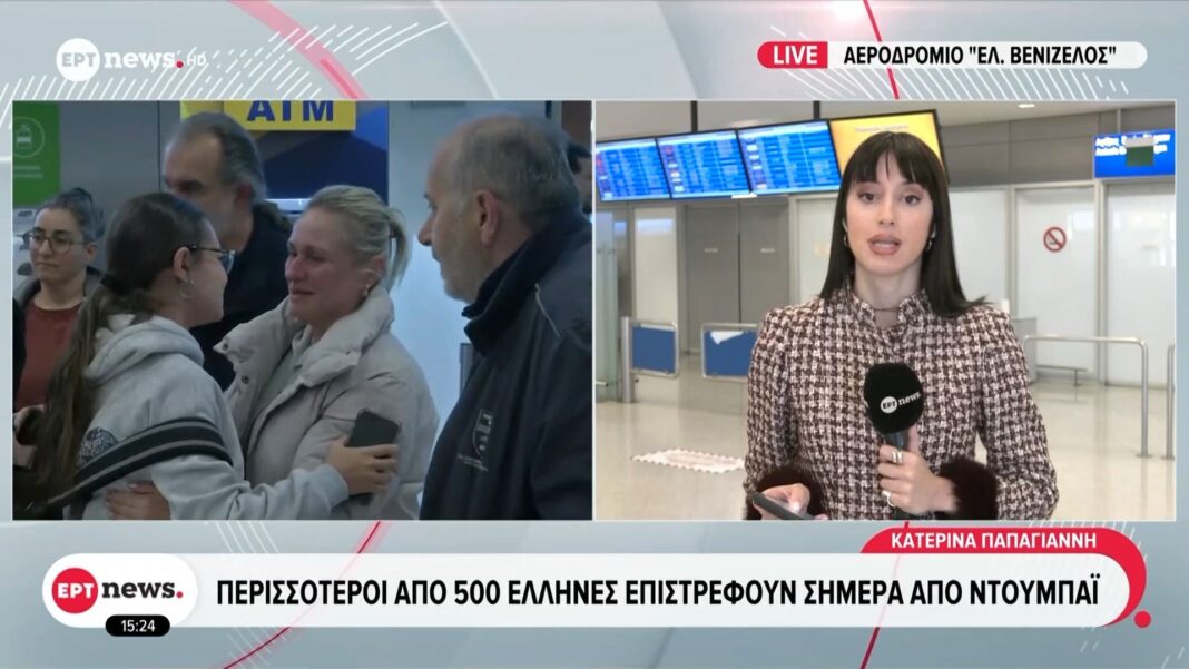 Σήμερα, περισσότεροι από 500 Έλληνες επιστρέφουν στην πατρίδα τους από το Ντουμπάι, στο πλαίσιο των συνεχιζόμενων προσπαθειών επαναπατρισμού που οργανώνονται από τις ελληνικές αρχές. Οι επιχειρήσεις αυτές έχουν ως στόχο την ασφαλή επιστροφή των πολιτών που βρίσκονται σε περιοχές της Μέσης Ανατολής.