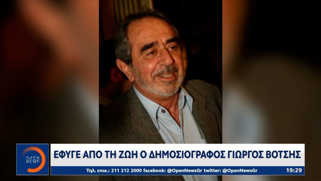 Έφυγε από τη ζωή σε ηλικία 88 ετών ο Γιώργος Βότσης, ένας από τους πιο σημαντικούς δημοσιογράφους της χώρας. Ξεκίνησε την καριέρα του το 1957 και κατά τη διάρκεια της χούντας των συνταγματαρχών, συμμετείχε ενεργά στην αντίσταση, ιδρύοντας την οργάνωση «Πατριωτικό Μέτωπο».