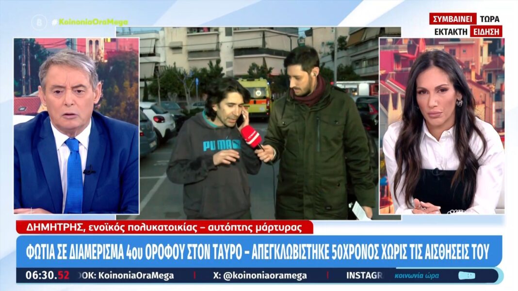 Φωτιά εκδηλώθηκε νωρίς το πρωί σε διαμέρισμα τετάρτου ορόφου πολυκατοικίας στον Ταύρο. Οι πυροσβεστικές δυνάμεις έσπευσαν άμεσα στο σημείο και κατάφεραν να σβήσουν τη φωτιά, ωστόσο, ένας 50χρονος άνδρας βρέθηκε χωρίς τις αισθήσεις του.