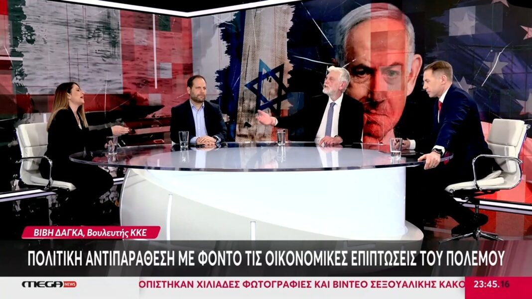 Η συζήτηση επικεντρώθηκε στον πόλεμο στη Μέση Ανατολή, με τους δύο πολιτικούς να μην αφήνουν τον παρουσιαστή να διακόψει για διαφημίσεις. Η ένταση της αντιπαράθεσης αποκαλύπτει τις διαφορές που υπάρχουν στο πολιτικό σκηνικό και τις επιπτώσεις τους στην εξωτερική πολιτική της Ελλάδας.