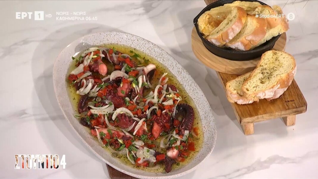 Ο Σταύρος Βαρθαλίτης μάς φτιάχνει χταπόδι ξυδάτο με μαρινάδα ψητής πιπεριάς Φλωρίνης
