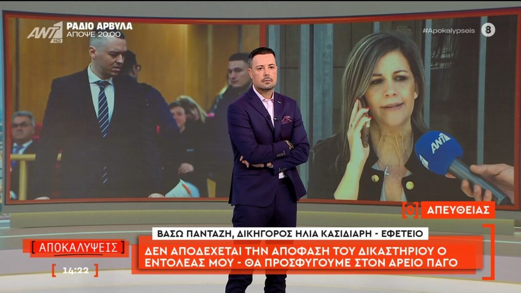 Η δικηγόρος Βάσω Πανταζή εξέφρασε τη θέση του εντολέα της, Ηλία Κασιδιάρη, σχετικά με την πρόσφατη απόφαση του δικαστηρίου. Σύμφωνα με την ίδια, ο Κασιδιάρης δεν αποδέχεται την απόφαση και προγραμματίζει προσφυγή στον Άρειο Πάγο για να αμφισβητήσει την κρίση.