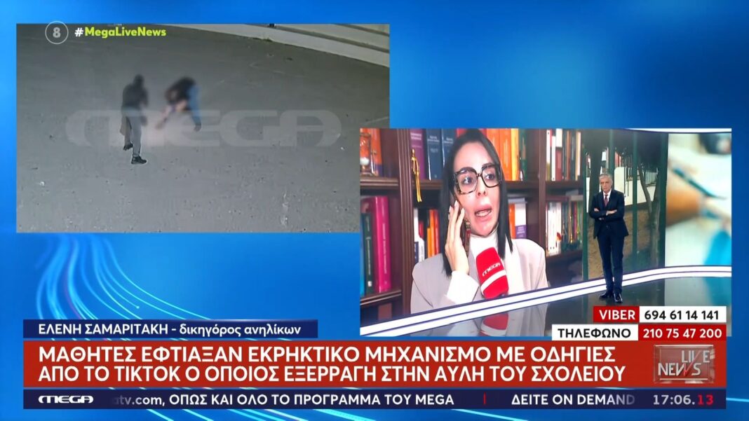 Η δικηγόρος των ανηλίκων που κατασκεύασαν και πυροδότησαν εκρηκτικό μηχανισμό σε σχολείο του Ηρακλείου, Ελένη Σαμαριτάκη, υποστηρίζει ότι τα παιδιά δεν είχαν προκαλέσει κανένα πρόβλημα προηγουμένως. Η ίδια έκανε δηλώσεις στο Live News, αναφέροντας ότι οι πράξεις τους δεν αντικατοπτρίζουν την προσωπικότητά τους.