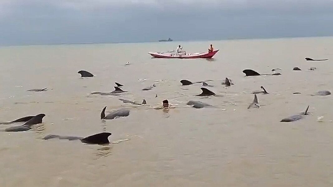 Διάσωση παγιδευμένων δελφινιών από κατοίκους στην Ινδονησία