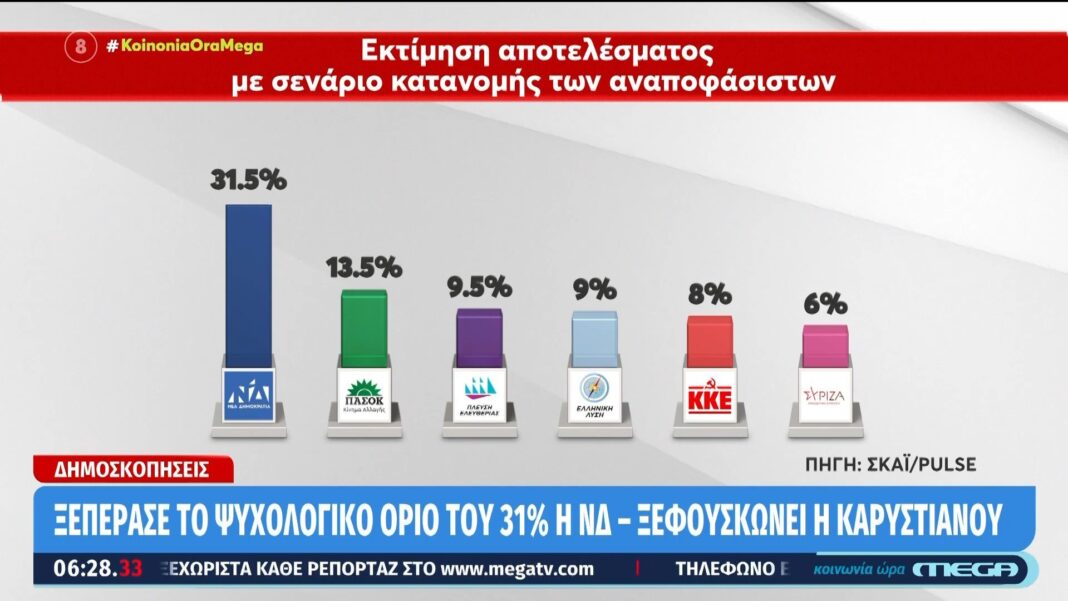 Ξεπέρασε το ψυχολογικό όριο του 31% η ΝΔ – Ξεφουσκώνει η Καρυστιανού