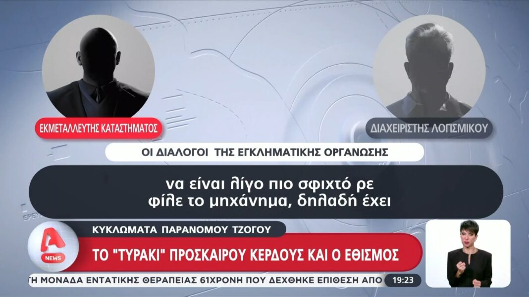 Μια εγκληματική οργάνωση έχει αποκαλυφθεί ότι δραστηριοποιείται στον παράνομο τζόγο, κερδίζοντας εκατομμύρια ευρώ. Οι διάλογοι που έχουν καταγραφεί μεταξύ των μελών της σπείρας αποκαλύπτουν τη μεθοδολογία τους και τις σχέσεις τους με άλλους παράγοντες της αγοράς.