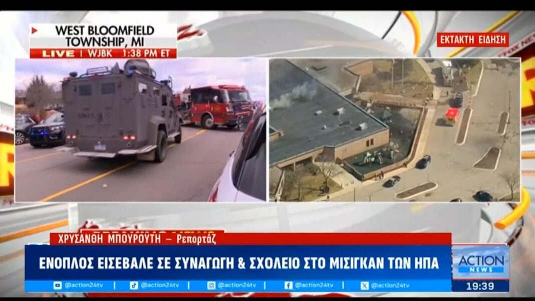Ένοπλος άνδρας πραγματοποίησε ένοπλη επίθεση σε συναγωγή και σχολείο στο Μίσιγκαν, προκαλώντας πανικό και ανησυχία στην τοπική κοινότητα. Οι αρχές έχουν κινητοποιηθεί άμεσα και διεξάγουν έρευνες για να διαπιστώσουν τα κίνητρα της επίθεσης και να εξασφαλίσουν την ασφάλεια των πολιτών.