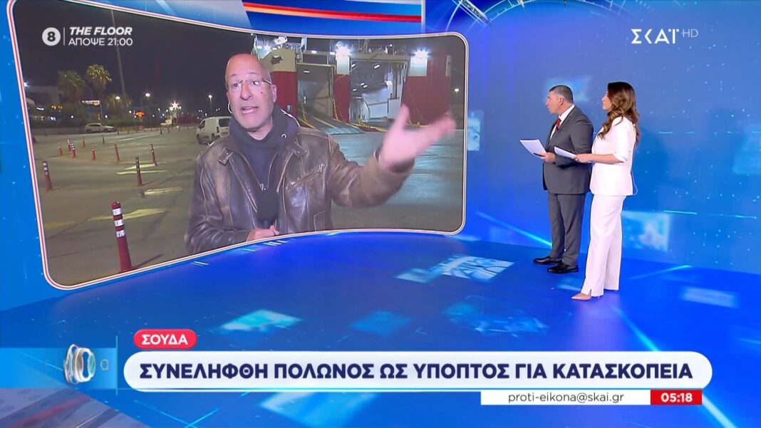 Οι αρχές στη Σούδα συνέλαβαν Πολωνό ύποπτο κατασκοπείας, μετά από ανησυχητικές πληροφορίες, ερευνώντας τυχόν συνδέσεις με ξένες υπηρεσίες για προστασία εθνικών συμφερόντων.