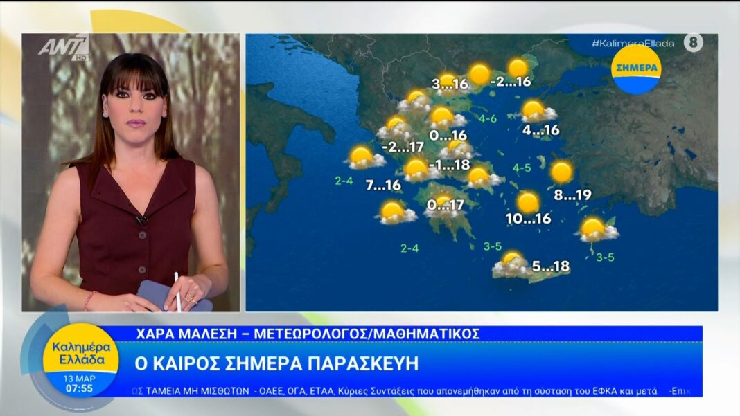 Η Χαρά Μάλεση μας ενημερώνει για τις καιρικές συνθήκες της ημέρας, με έμφαση στις θερμοκρασίες και τις πιθανές βροχοπτώσεις σε διάφορες περιοχές της χώρας. Αναμένονται ηλιοφάνεια και ήπιες θερμοκρασίες στα κεντρικά και νότια, ενώ οι βόρειες περιοχές θα βιώσουν περισσότερες νεφώσεις και πιθανές καταιγίδες.