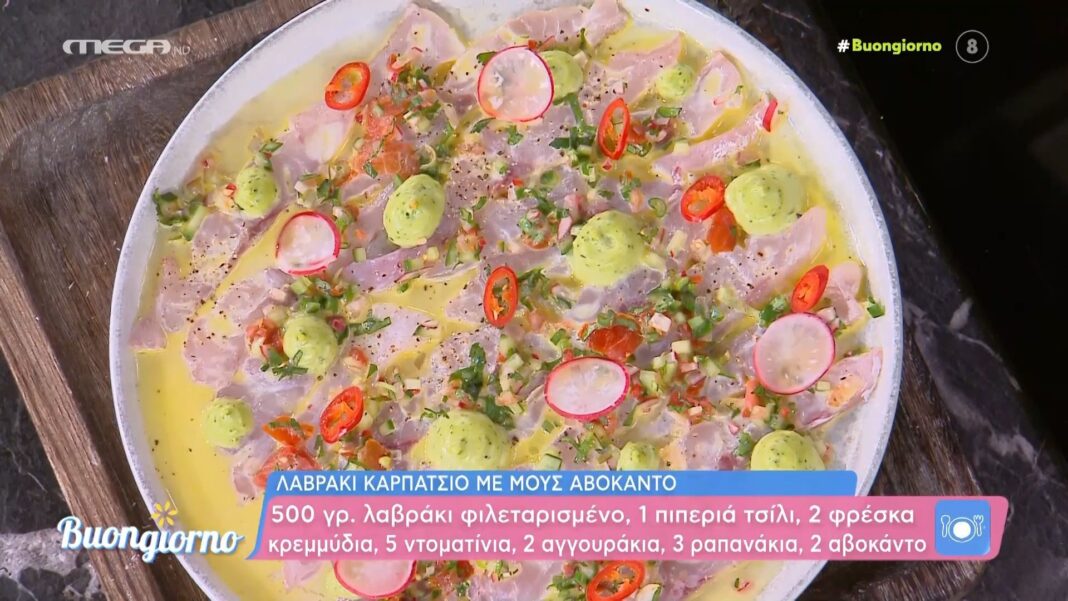 Ο Δημήτρης Σκαρμούτσος μας προσκαλεί να ανακαλύψουμε μια γευστική συνταγή που συνδυάζει τη φρεσκάδα του λαβρακιού με την κρεμώδη υφή της μους αβοκάντο. Με προσεκτικά επιλεγμένα υλικά όπως πιπεριά τσίλι, φρέσκα κρεμμύδια και ντοματίνια, το πιάτο αυτό υπόσχεται να εντυπωσιάσει τους ουρανίσκους.