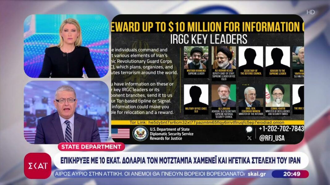 Το Υπουργείο Εξωτερικών των ΗΠΑ ανακοίνωσε την απόφαση να επικήρυξει τον Μοτζτάμπα Χαμενεΐ, καθώς και σημαντικά στελέχη του Ιράν, προσφέροντας 10 εκατομμύρια δολάρια για πληροφορίες που θα οδηγήσουν στη σύλληψή τους. Αυτή η κίνηση εντάσσεται σε μια ευρύτερη στρατηγική των Ηνωμένων Πολιτειών για την καταπολέμηση της επιρροής του Ιράν στην περιοχή.