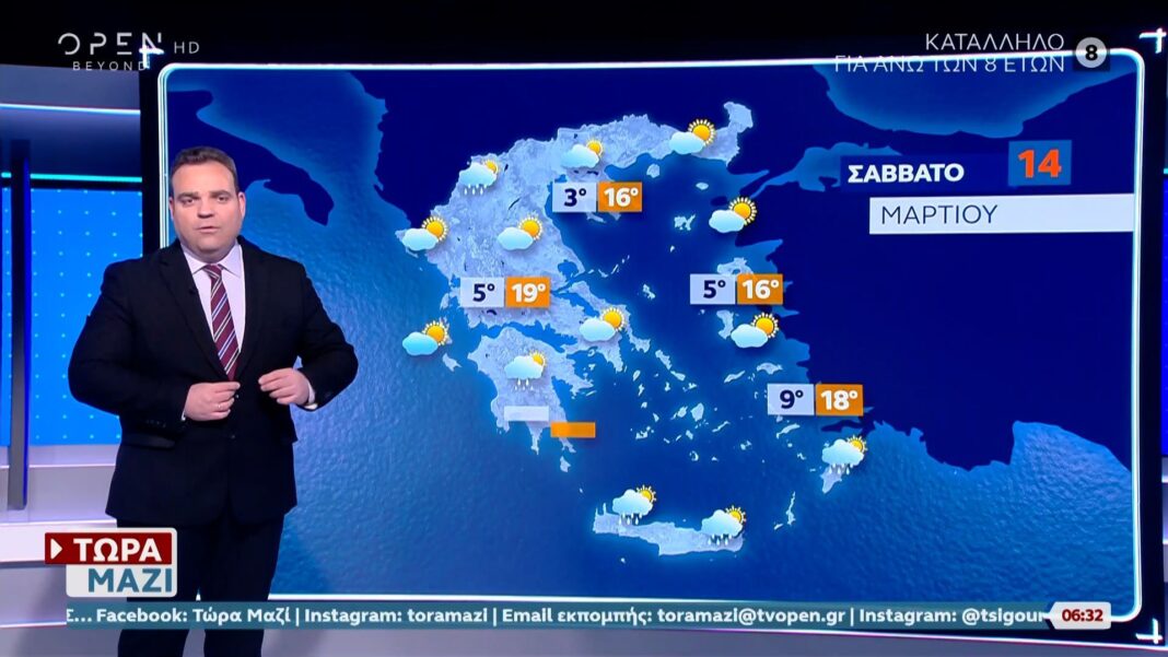 Ο καιρός σήμερα αναμένεται γενικά αίθριος, με ηλιοφάνεια να κυριαρχεί σε όλη τη χώρα. Οι θερμοκρασίες θα κυμανθούν σε επίπεδα ευχάριστα για την εποχή, προσφέροντας ιδανικές συνθήκες για εξωτερικές δραστηριότητες.