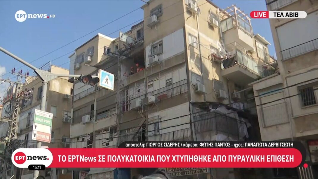 Το ΕΡΤ news σε πολυκατοικία που χτυπήθηκε από πυραυλική επίθεση στο Τελ Αβίβ