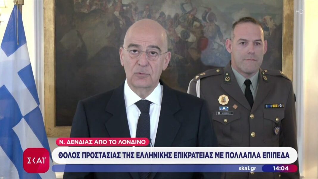 Ο Υπουργός Εξωτερικών, Νίκος Δένδιας, παρουσίασε από το Λονδίνο τις στρατηγικές πρωτοβουλίες της κυβέρνησης για την ενίσχυση της ασφάλειας της Ελληνικής επικράτειας. Τόνισε τη σημασία της δημιουργίας ενός θόλου προστασίας που θα περιλαμβάνει πολλαπλά επίπεδα άμυνας, ανταγωνιζόμενος τις προκλήσεις στην περιοχή.