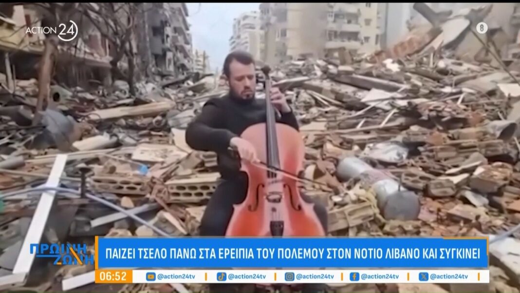 Στα ερείπια του πολέμου στον Νότιο Λίβανο, ένας μουσικός επιλέγει να εκφράσει τη θλίψη και την ελπίδα του μέσα από τη μελωδία του τσέλου του. Η εικόνα του να παίζει ανάμεσα σε κατεστραμμένα κτίρια και υπολείμματα της σύγκρουσης δημιουργεί μια δυνατή αντίθεση που συγκινεί τους θεατές.