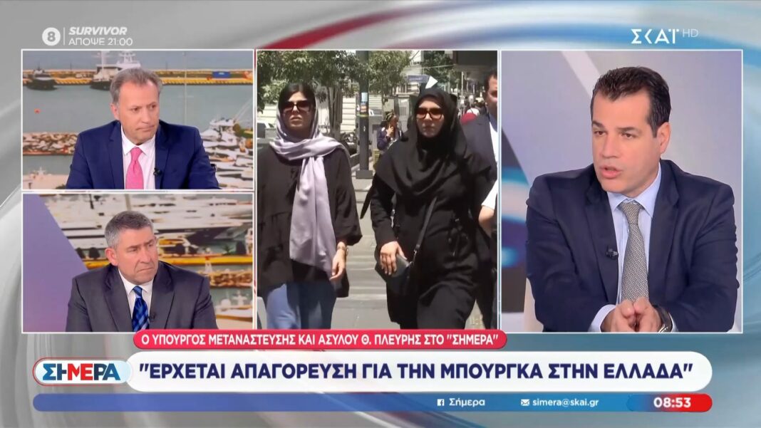 Ο υπουργός Μετανάστευσης και Ασύλου, Θάνος Πλεύρης, αναφέρθηκε στη συζήτηση που έχει ανοίξει σχετικά με την πιθανή θεσμοθέτηση απαγόρευσης της μπούρκας στη χώρα μας. Επισημαίνει ότι προς το παρόν δεν έχει ληφθεί καμία απόφαση, αλλά η συζήτηση είναι αναγκαία στο πλαίσιο των μεταναστευτικών ροών που προκαλούνται από τις συγκρούσεις στη Μέση Ανατολή.