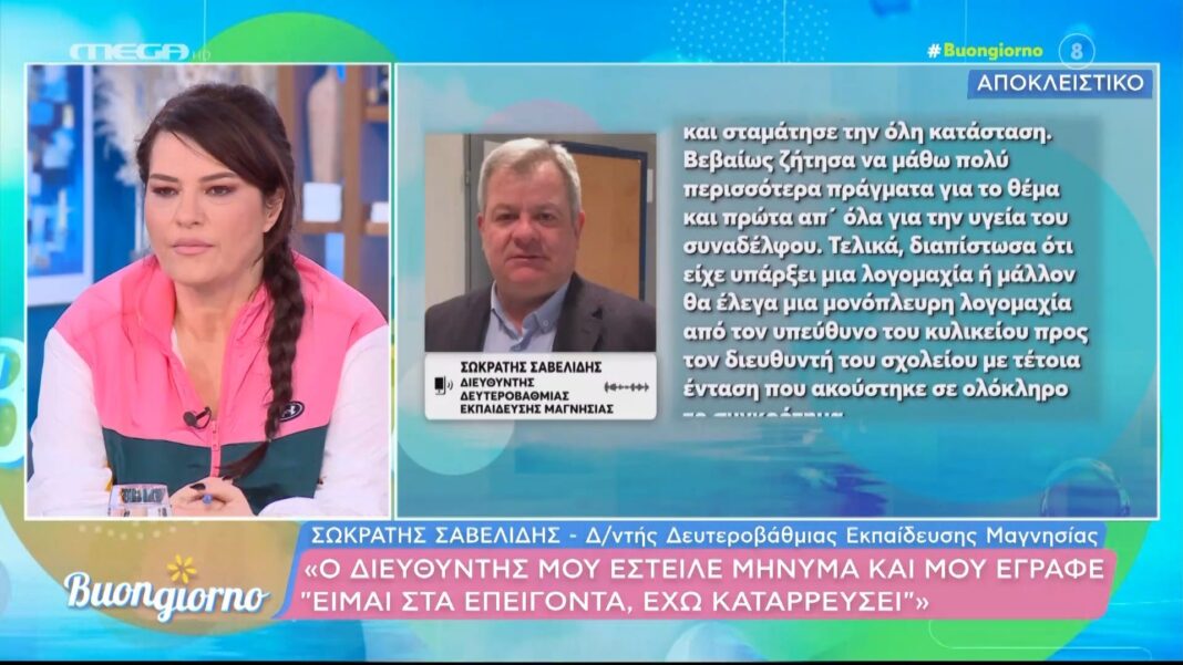 Διευθυντής σχολείου στην περιοχή του Βόλου υπέστη τραυματισμό και μεταφέρθηκε στο νοσοκομείο έπειτα από έντονη λεκτική αντιπαράθεση με τον υπεύθυνο του κυλικείου. Σύμφωνα με τον Σ. Βαβελίδη, Διευθυντή Δευτεροβάθμιας Εκπαίδευσης Μαγνησίας, η ένταση ήταν τόσο μεγάλη που ακούστηκε σε ολόκληρο το σχολικό συγκρότημα.