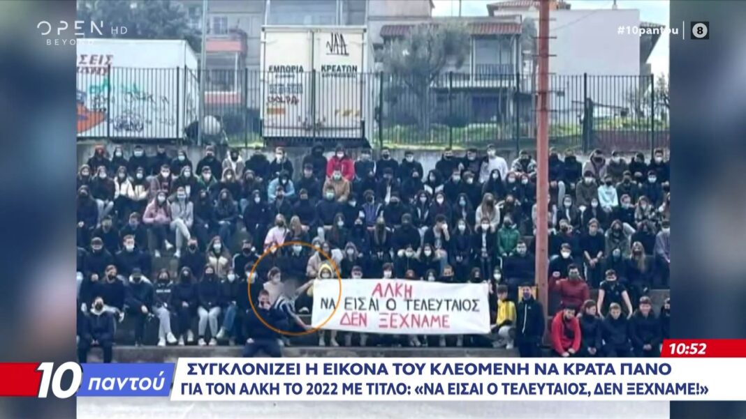 Μια φωτογραφία που έχει προκαλέσει σοκ και θλίψη αναδεικνύει τον 20χρονο Κλεομένη, ο οποίος δολοφονήθηκε στην Καλαμαριά. Στην εικόνα, ο αδικοχαμένος νέος, μόλις 16 ετών τότε, κρατάει με περηφάνια πανό σε μια συγκέντρωση μνήμης για τον Άλκη Καμπανό, που είχε επίσης χάσει τη ζωή του από βία.